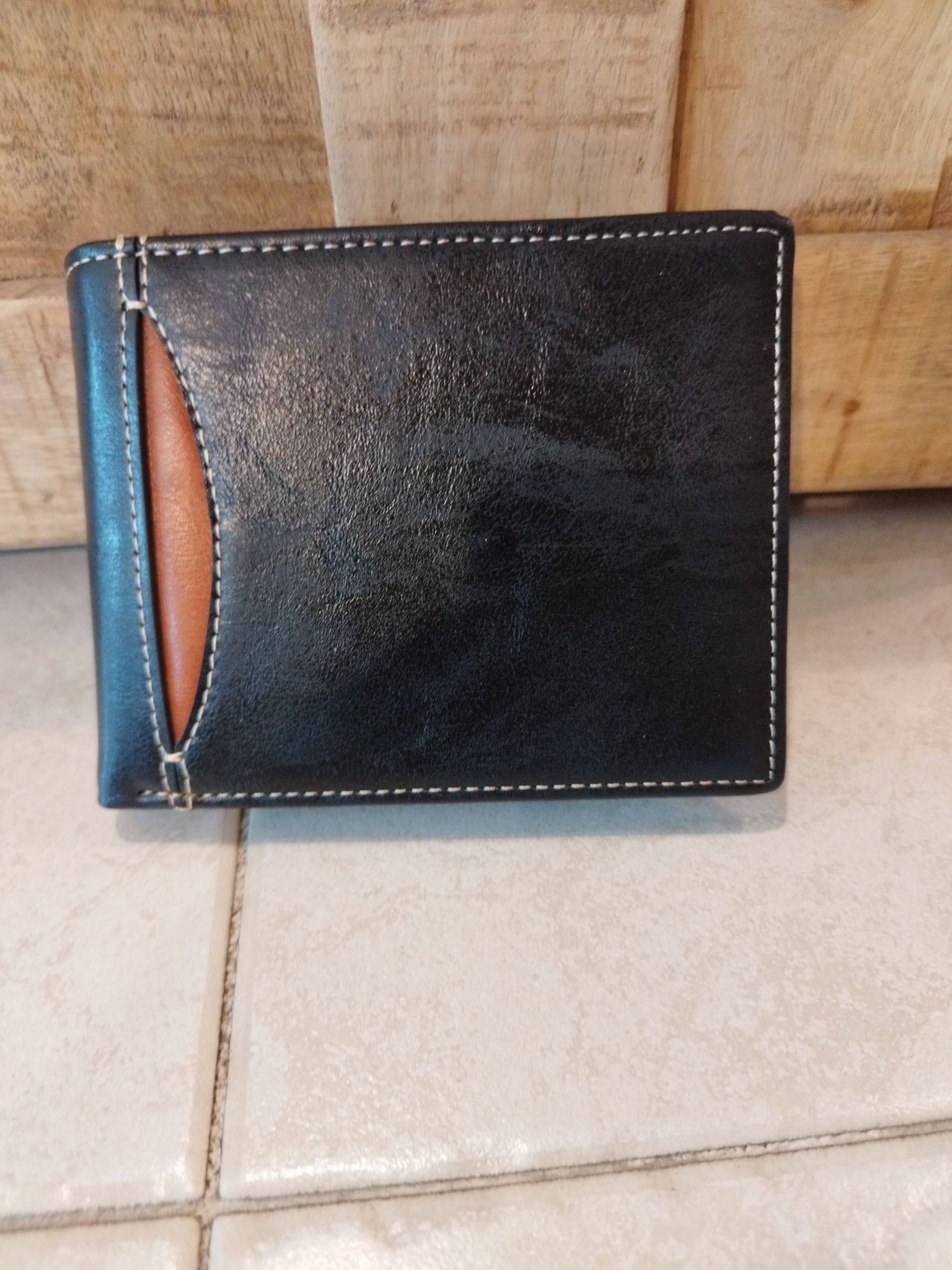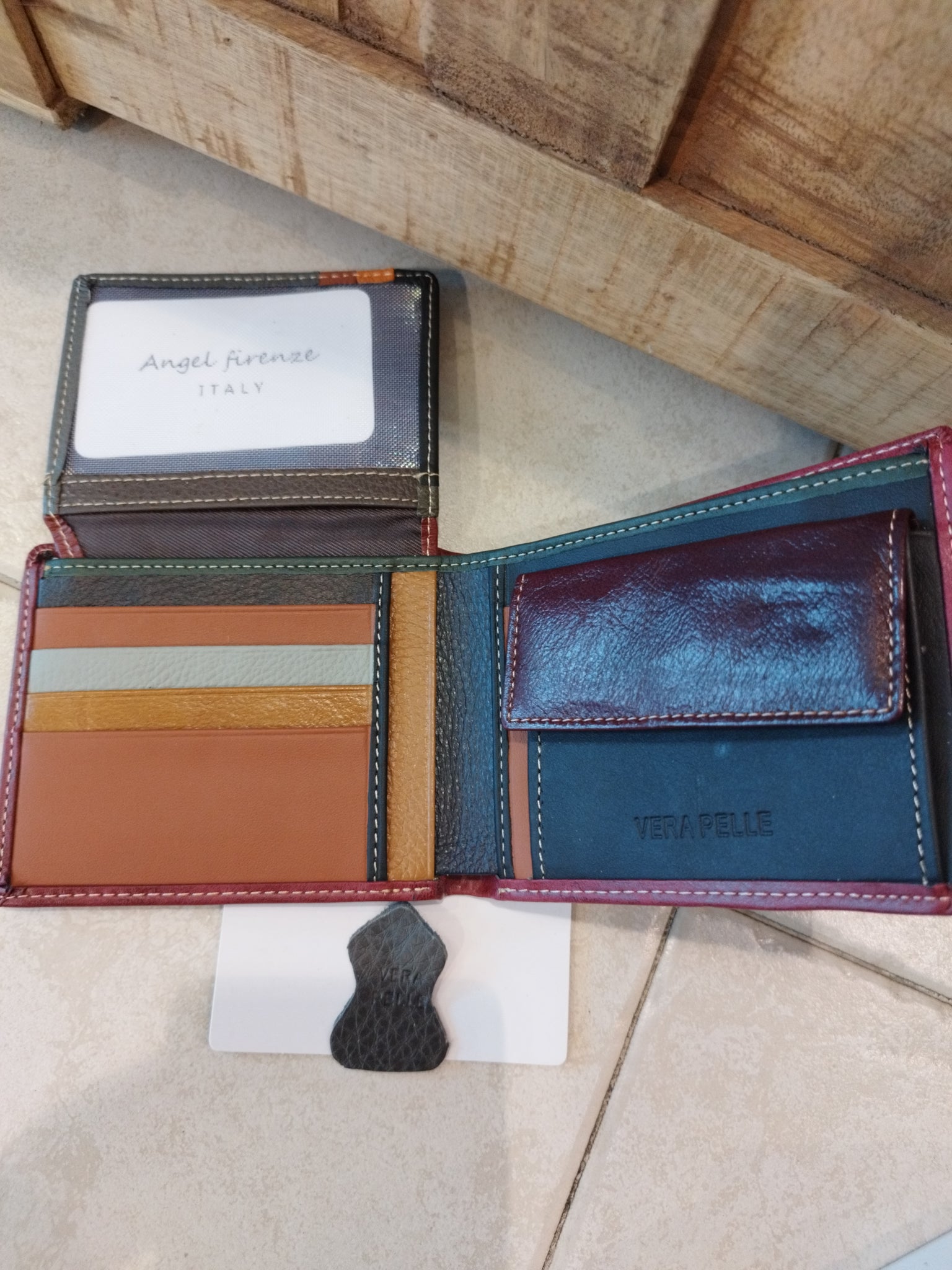 Portafoglio in vera pelle da uomo con spazio porta documenti porta monete e banconote.